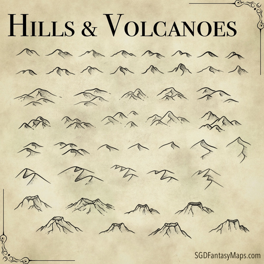 Elevate your mapmaking with this collection of over 200 hand-drawn mountains and land assets.