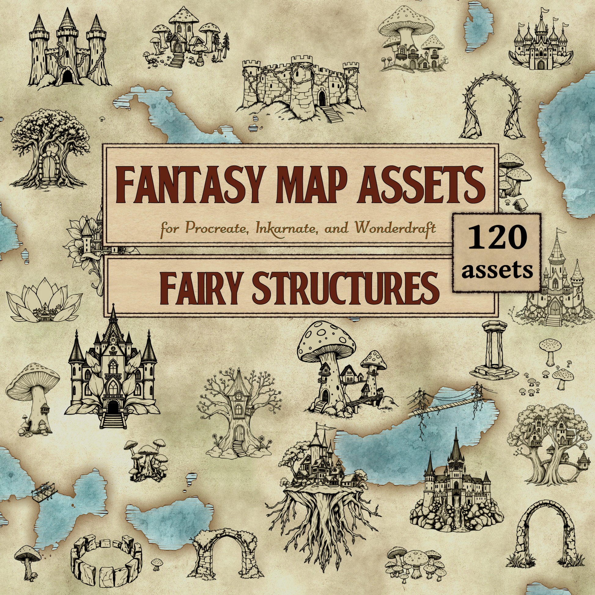 Create enchanting fantasy maps with this collection of 120 unique fantasy fairy structure assets!